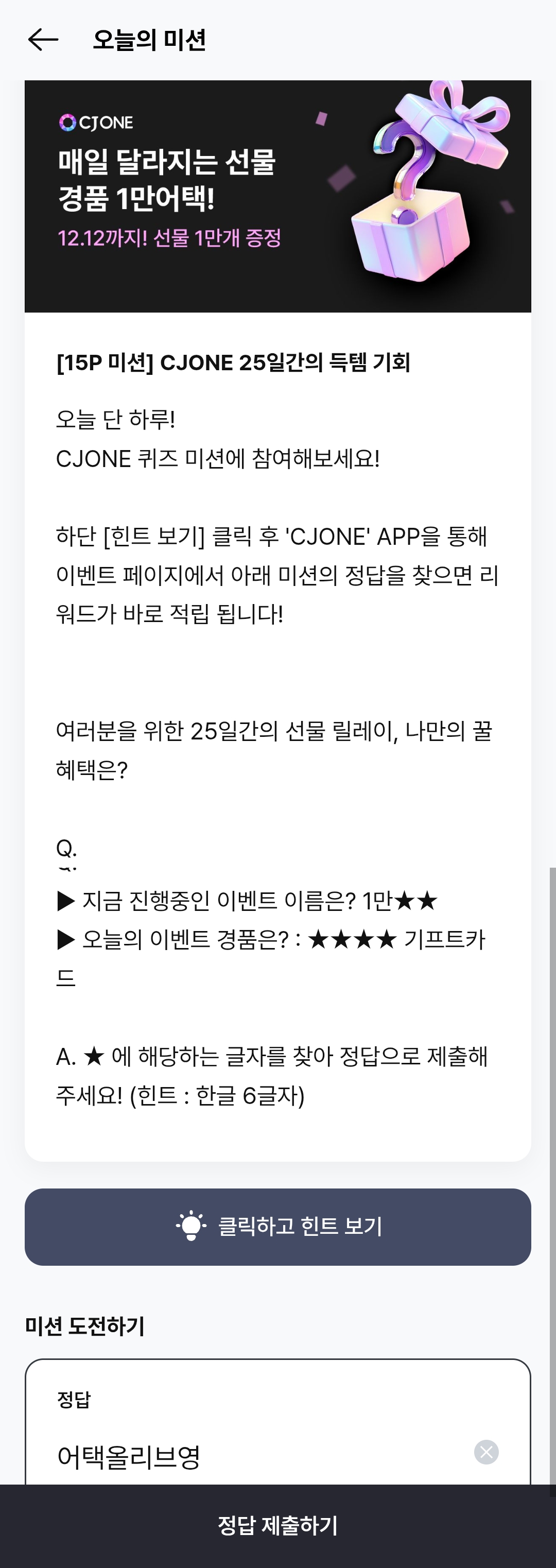 공개된 정답 입력 - 포인트 즉시 적립 및 다양한 이벤트에 참여 가능