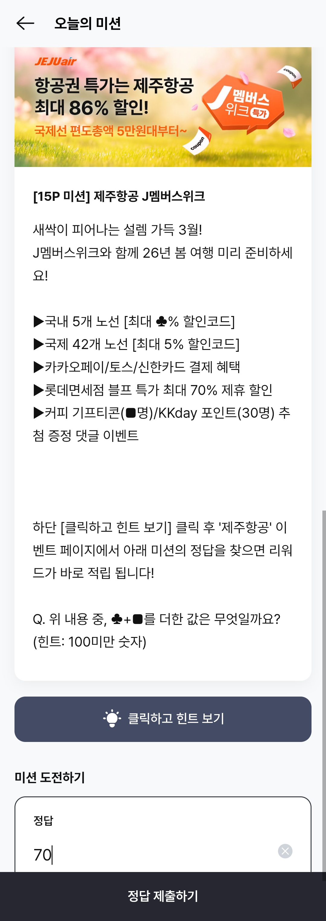 아래에서 제주항공 문제의 최신 정답을 확인해 보시고, 리워드 포인트 놓치지 마세요!
