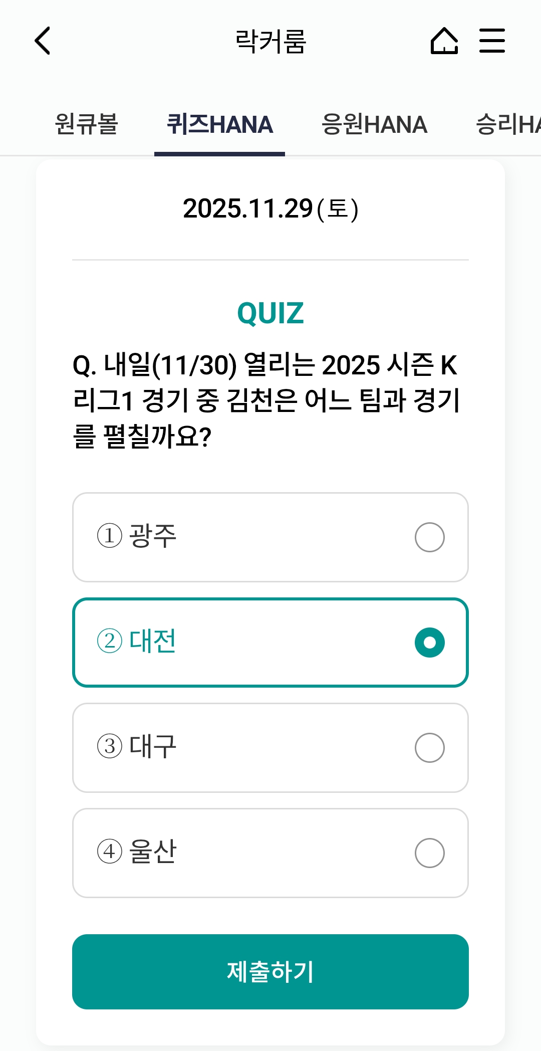 ⚽ 오늘의 하나원큐 축구퀴즈 정답 (2025년 11월 29일)