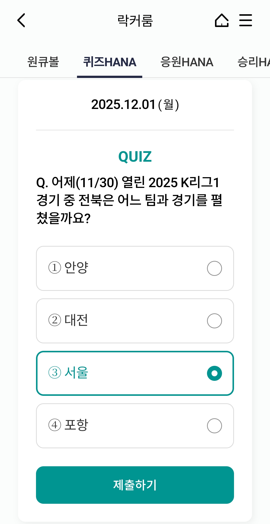 ⚽ 오늘의 하나원큐 축구퀴즈 정답 (2025년 12월 1일)