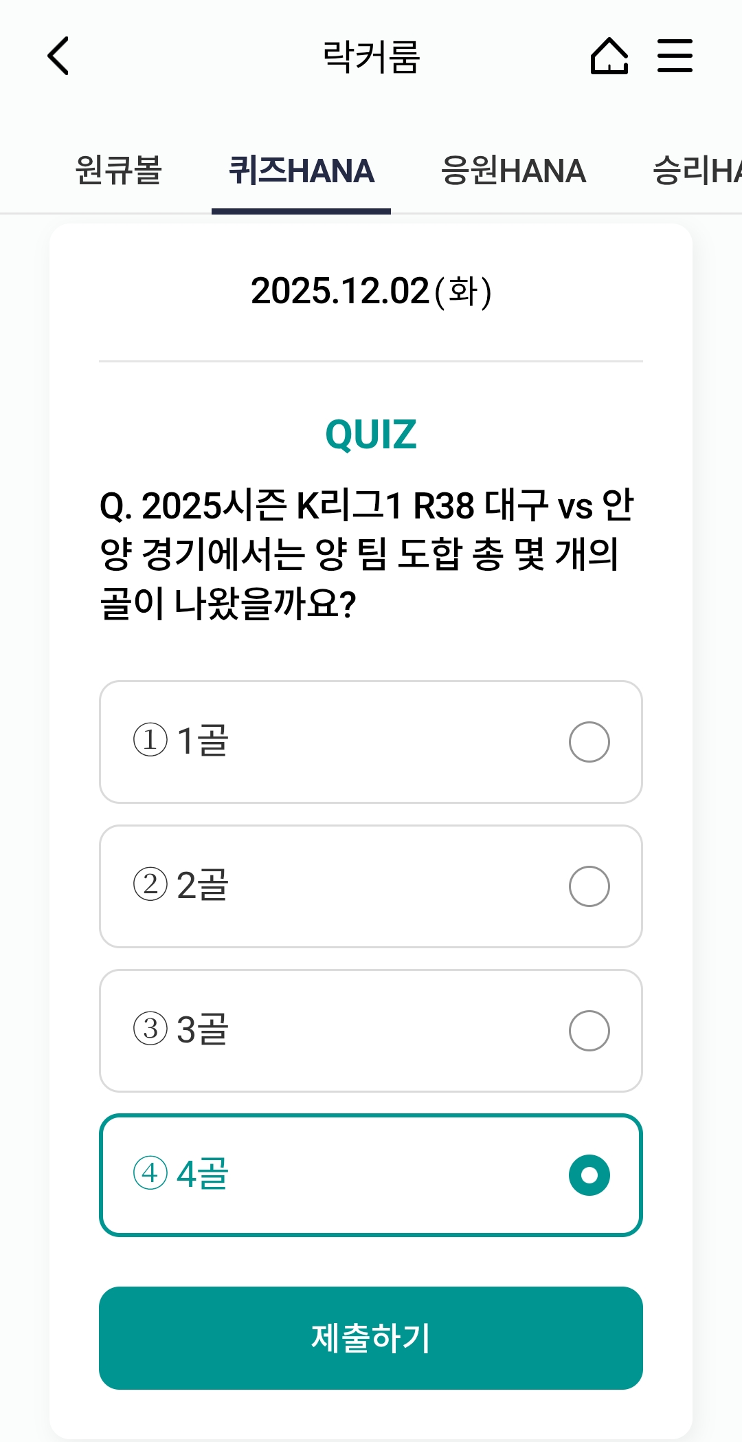 ⚽ 오늘의 하나원큐 축구퀴즈 정답 (2025년 12월 2일)