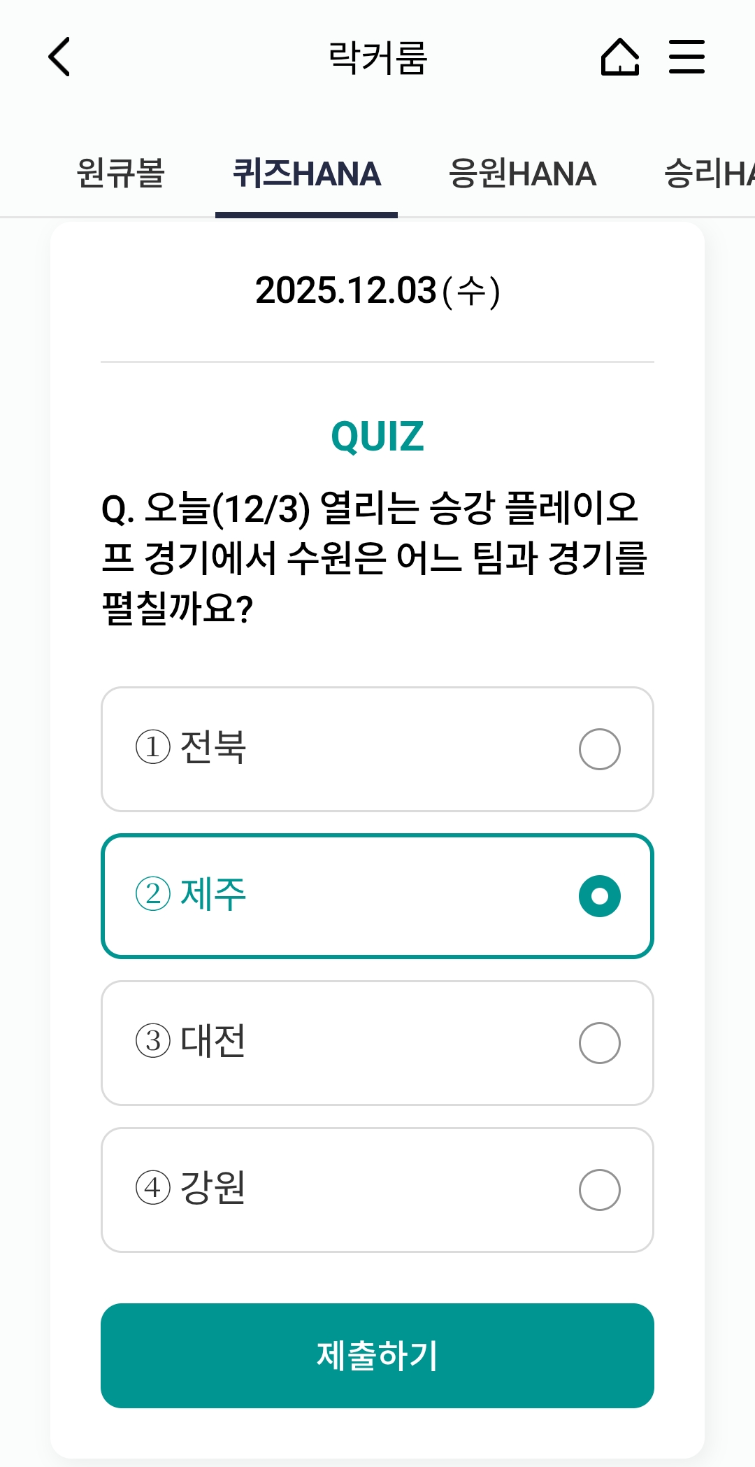 ⚽ 오늘의 하나원큐 축구퀴즈 정답 (2025년 12월 3일)