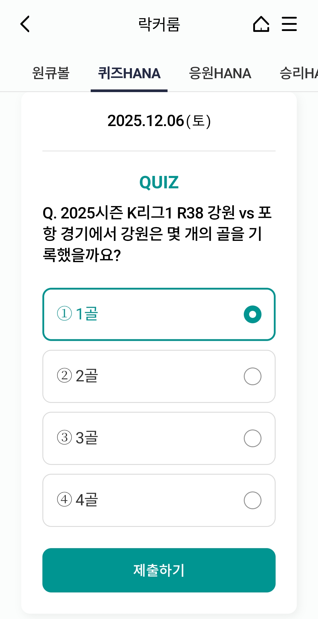 ⚽ 오늘의 하나원큐 축구퀴즈 정답 (2025년 12월 6일)