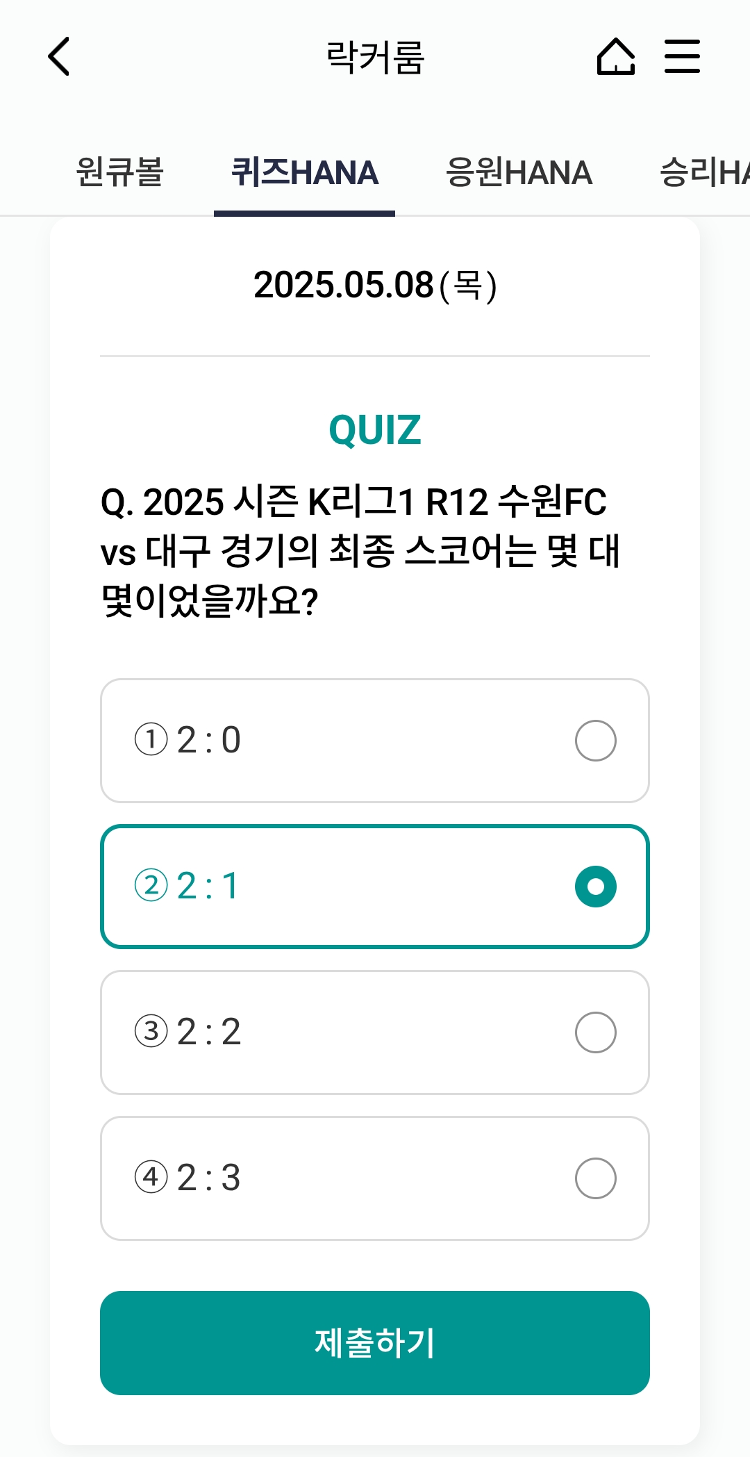📅 2025년 5월 8일 하나원큐 축구퀴즈