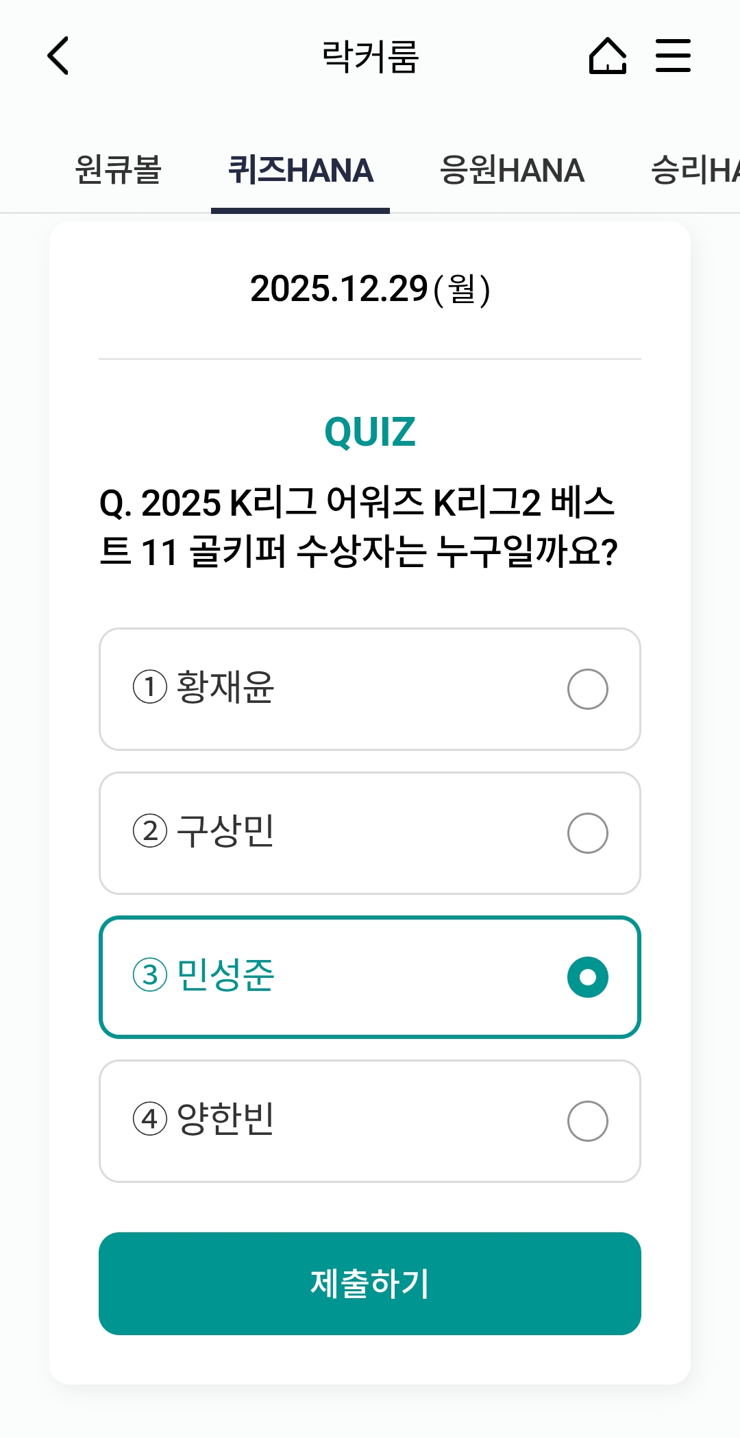 ⚽ 오늘의 하나원큐 축구퀴즈 정답 (2025년 12월 29일)