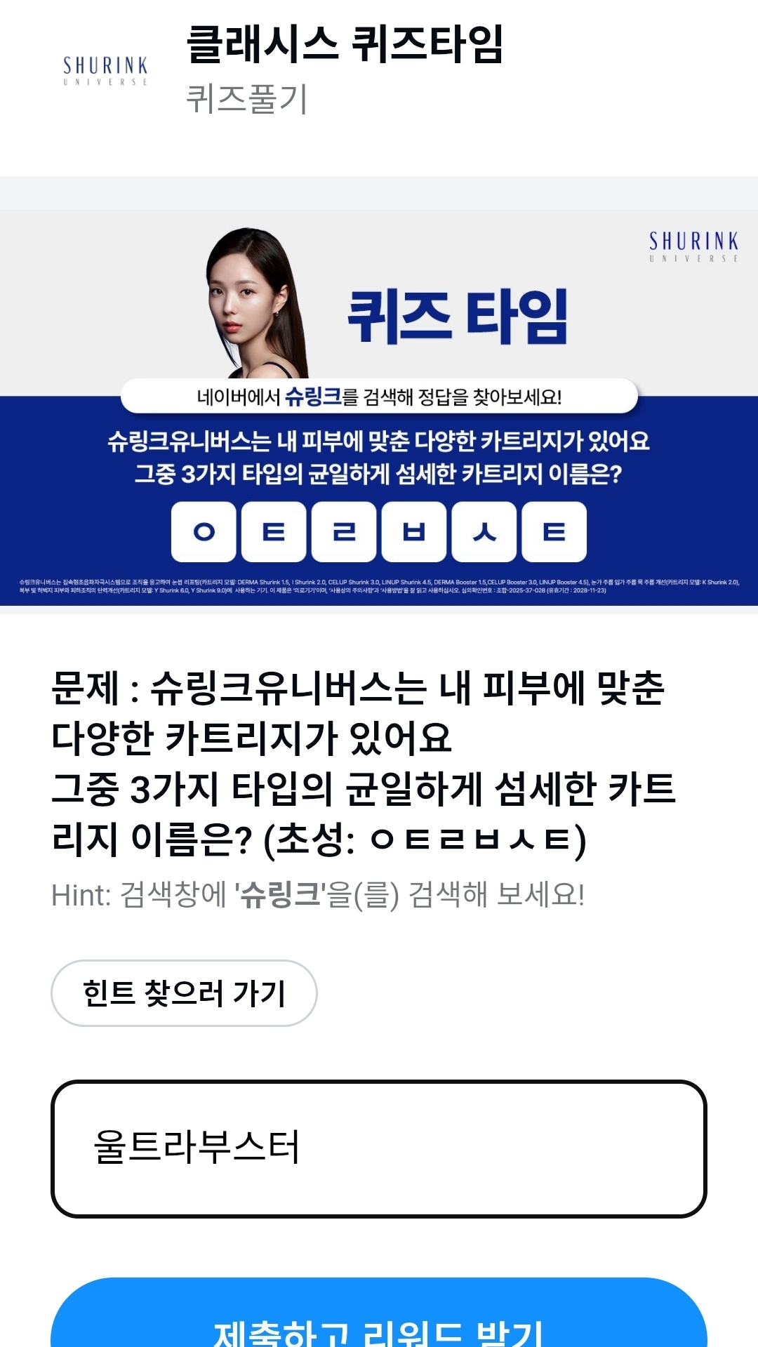 퀴즈의 정답인 '울트라부스터'는 슈링크유니버스의 대표 카트리지 중 하나로: