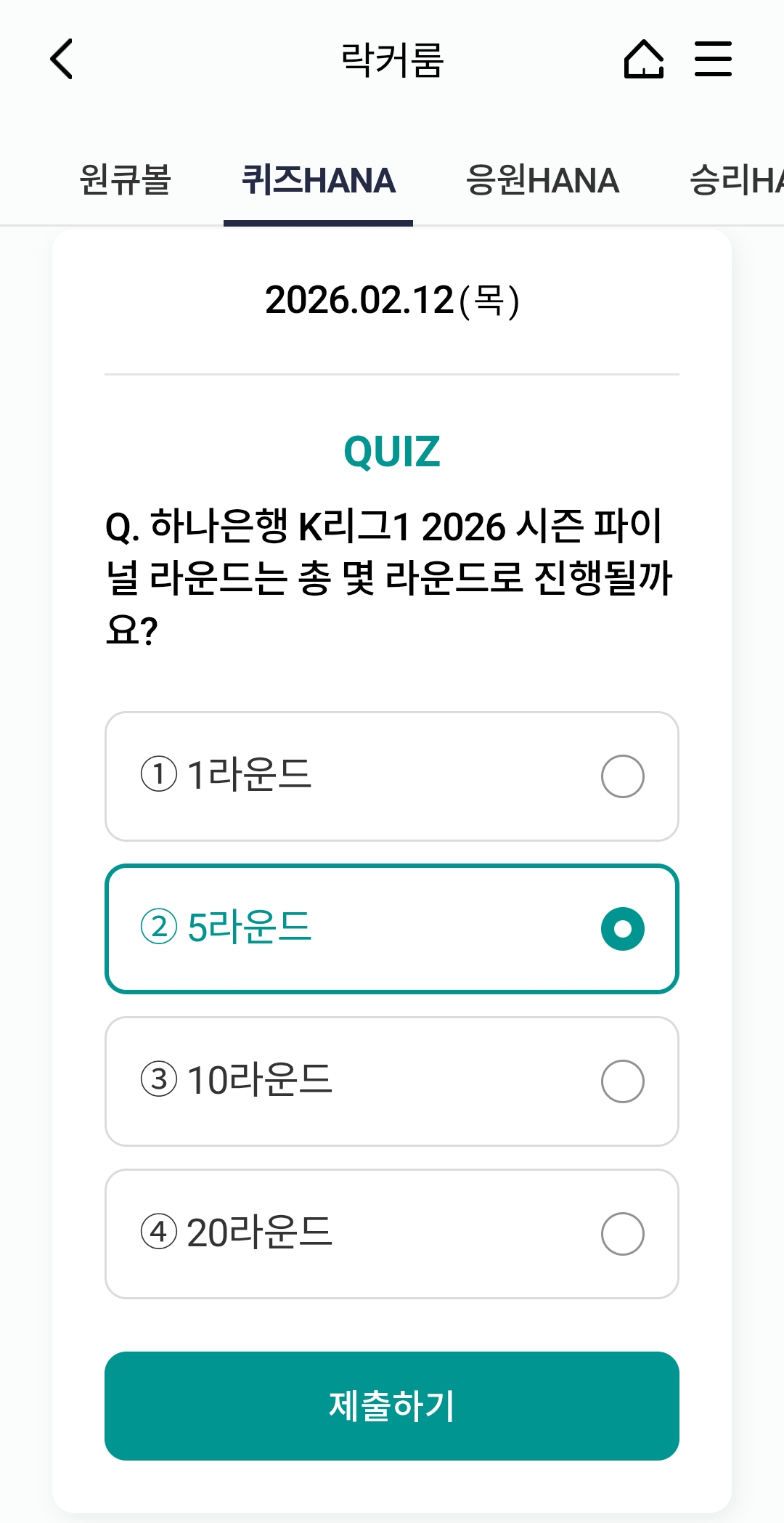 ⚽ 오늘의 하나원큐 축구퀴즈 정답 (2026년 2월 12일)
