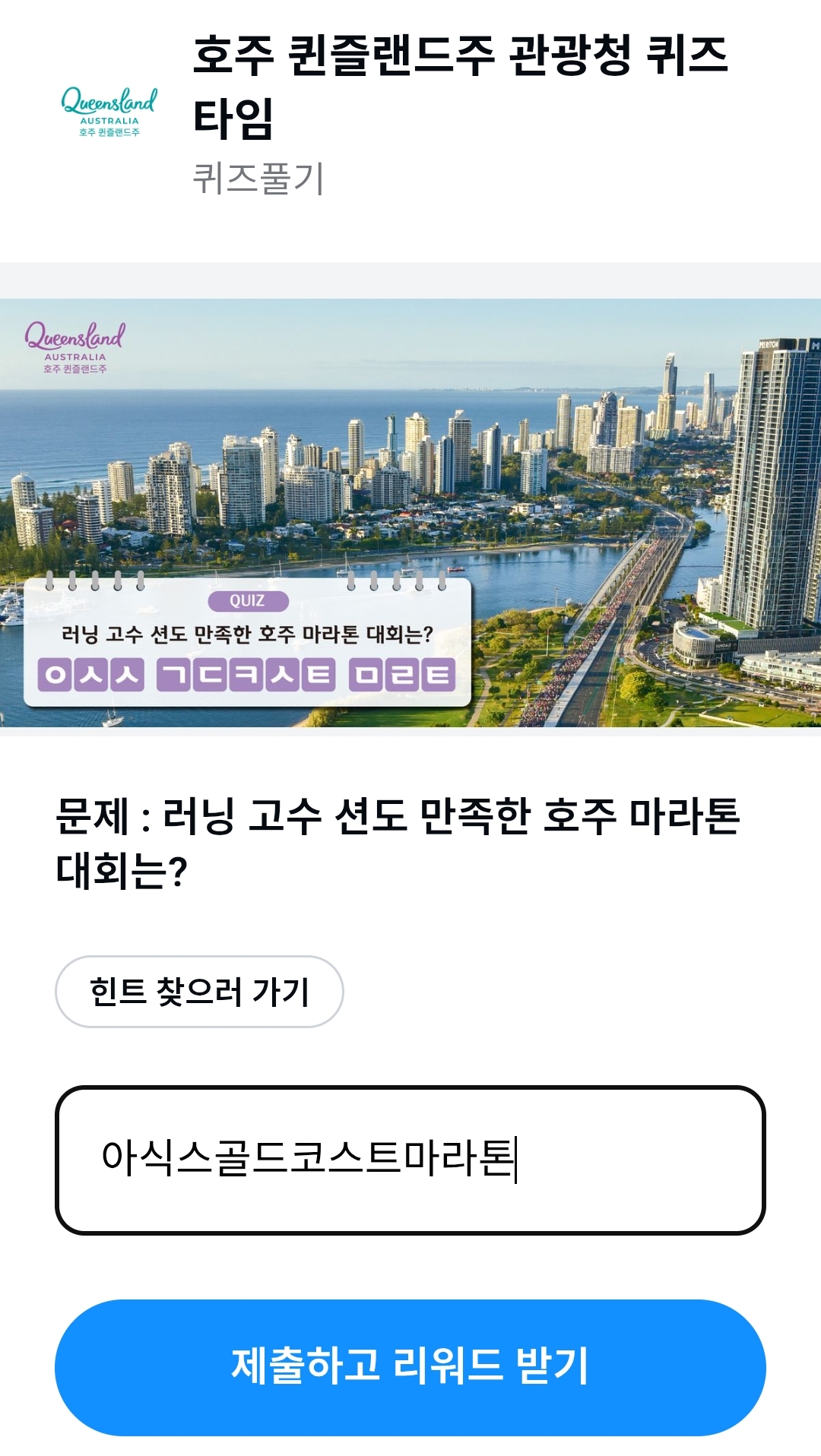- 정답: 아식스골드코스트마라톤