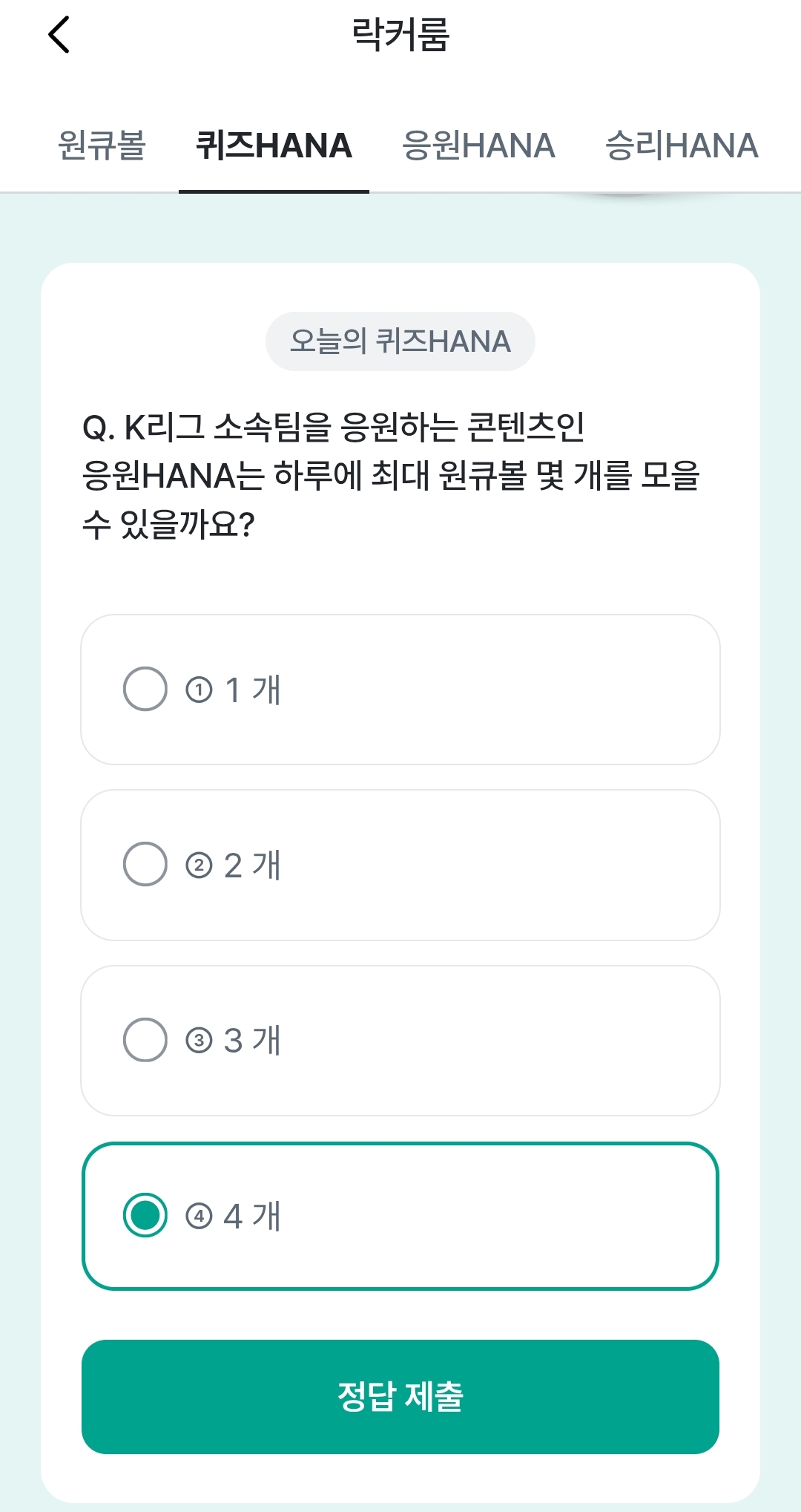 - 문제: K리그 소속팀을 응원하는 콘텐츠인 응원HANA는 하루에 최대 원큐볼 몇 개를 모을 수 있을까요?