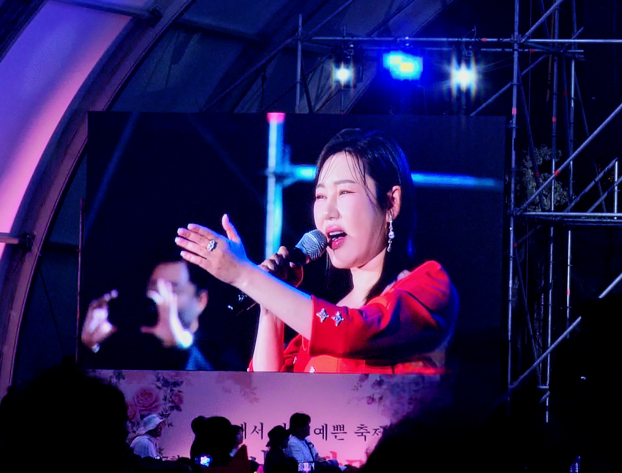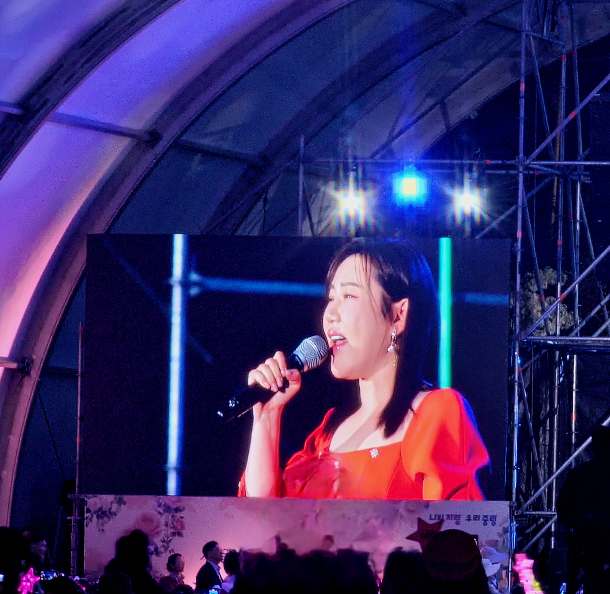 '가인이어라'를 시작으로 '엄마아리랑', '왜 나를', '붉은 목단꽃'으로 이어진 공연은 관객들의 뜨거운 호응을 받았습니다. 특히 감성을 자극하는 '엄마아리랑'과 강렬한 '붉은 목단꽃'은 중랑구의 밤하늘을 수놓는 명품 무대였습니다.