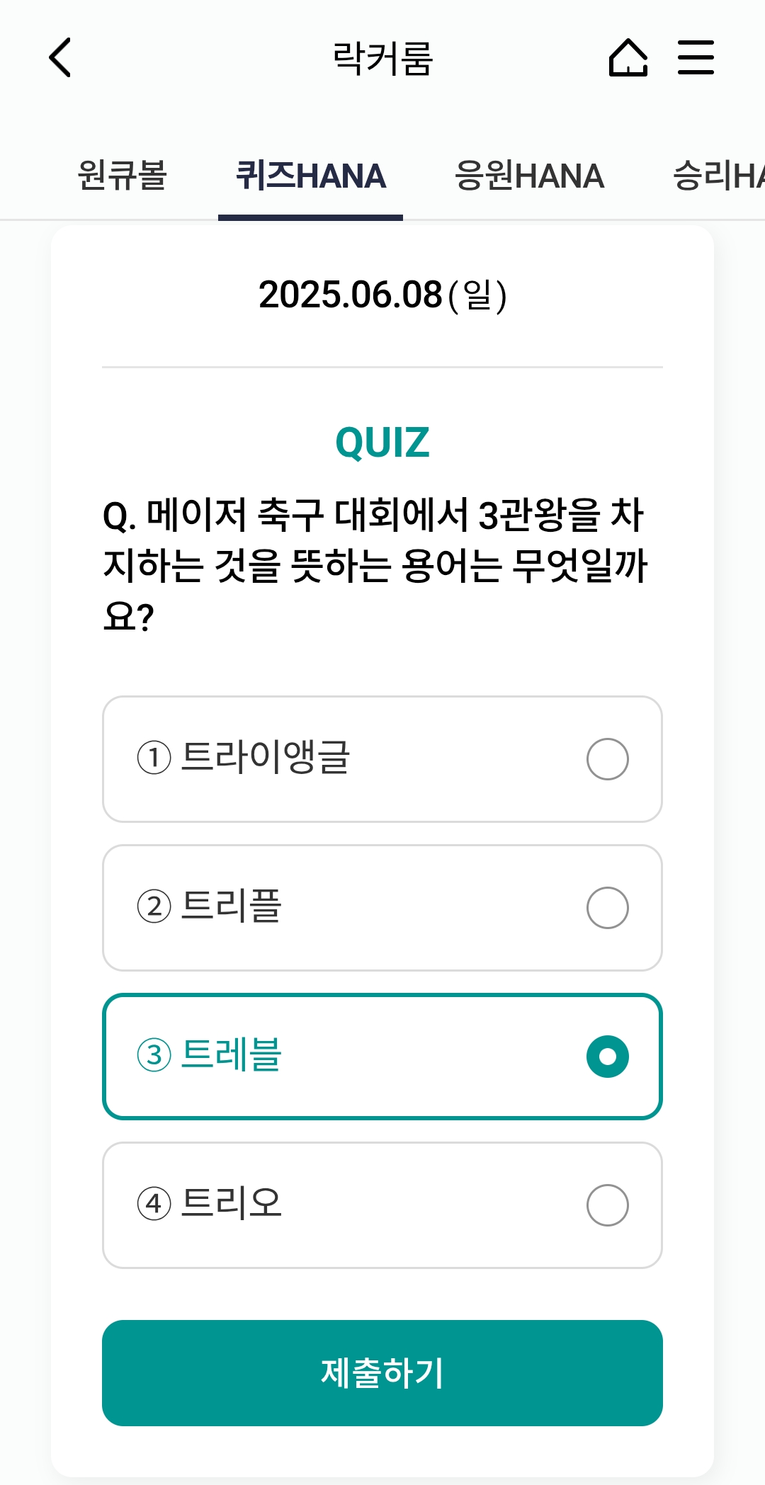 오늘의 하나원큐 축구퀴즈 정답 (2025년 6월 8일)
