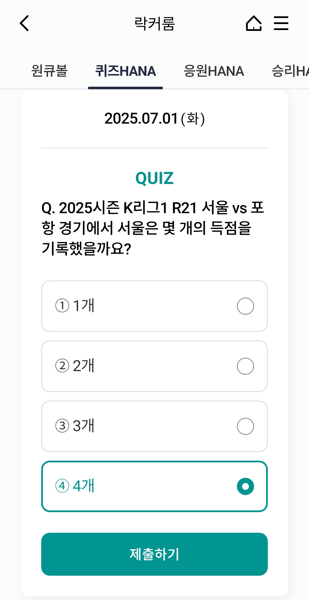 오늘의 하나원큐 축구퀴즈 정답 (2025년 7월 1일)