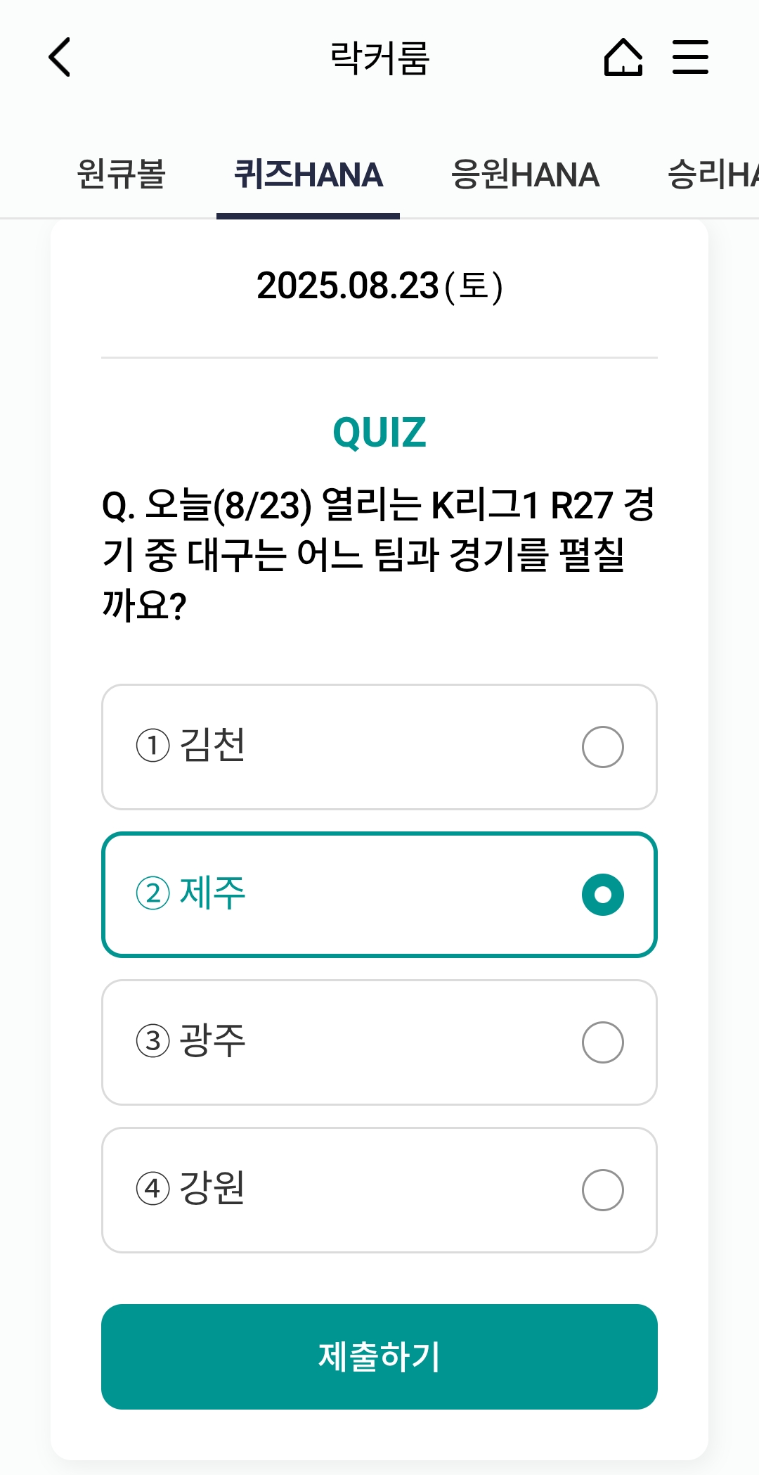 오늘의 하나원큐 축구퀴즈 정답 (2025년 8월 23일)