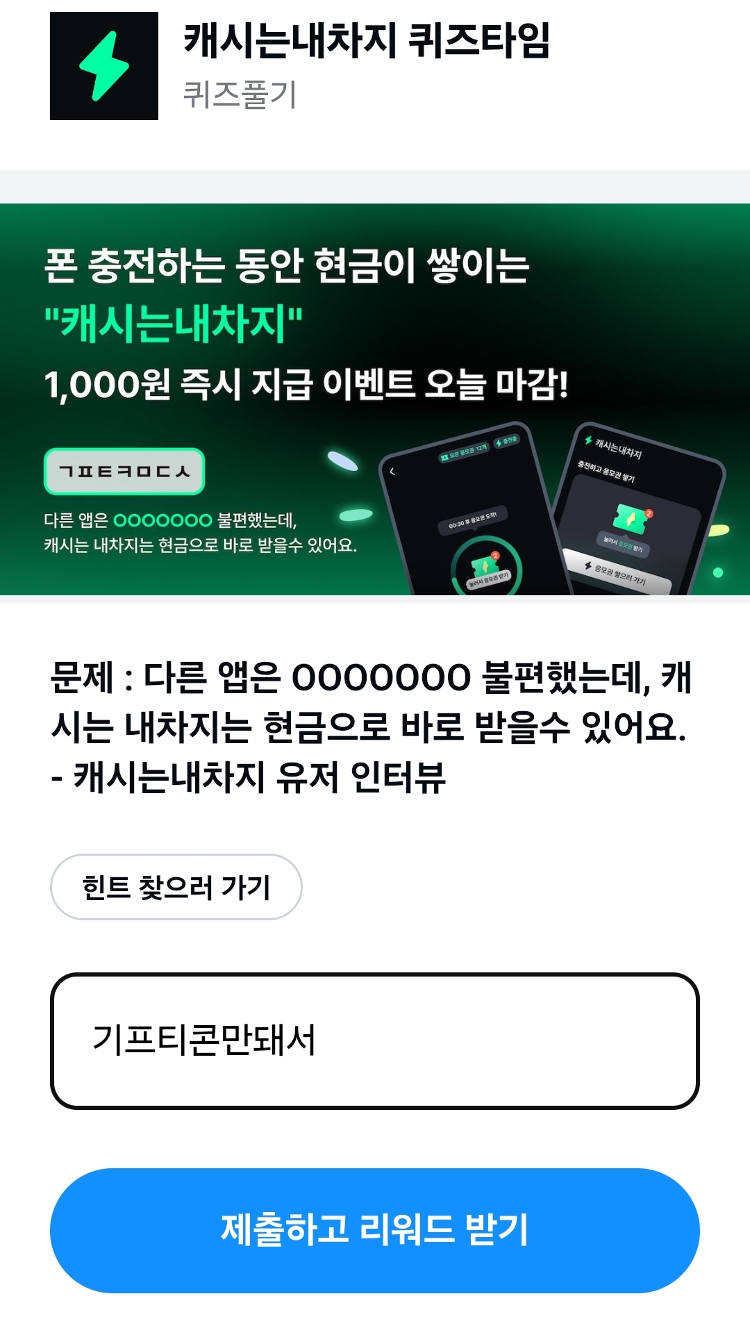 아래에서 캐시는내차지 'ㄱㅍㅌㅋㅁㄷㅅ' 문제의 최신 정답을 확인해 보시고, 리워드 포인트 놓치지 마세요!