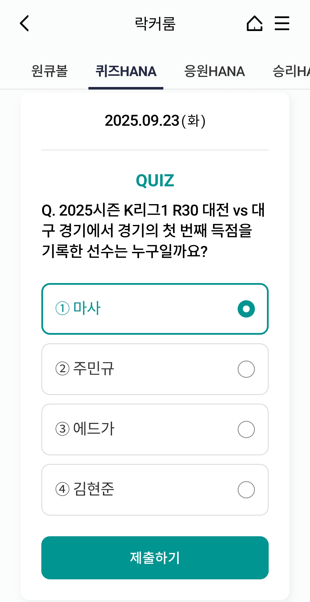 ⚽ 오늘의 하나원큐 축구퀴즈 정답 (2025년 9월 23일)