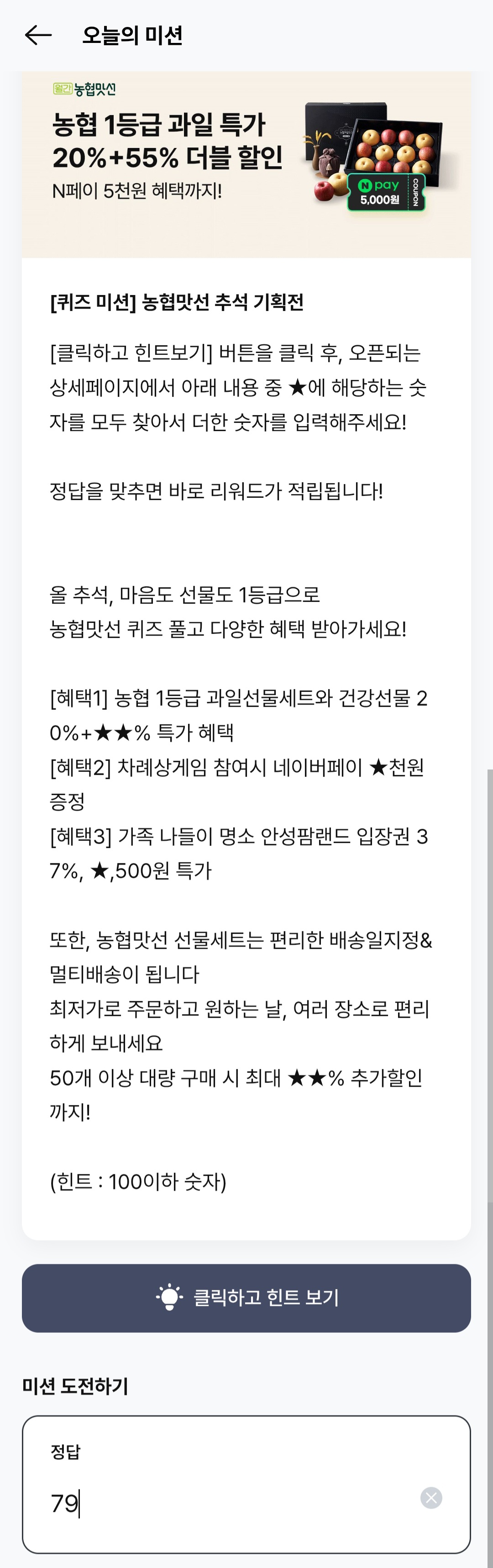 아래에서 농협맛선 ⭐️ 숫자 합 문제의 최신 정답을 확인해 보시고, 리워드 포인트 놓치지 마세요!