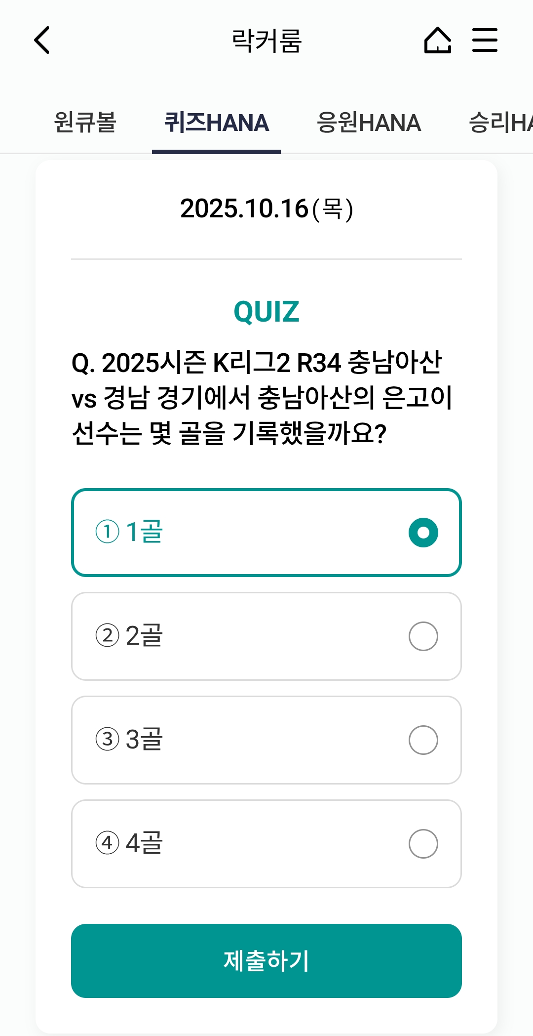 ⚽ 오늘의 하나원큐 축구퀴즈 정답 (2025년 10월 16일)