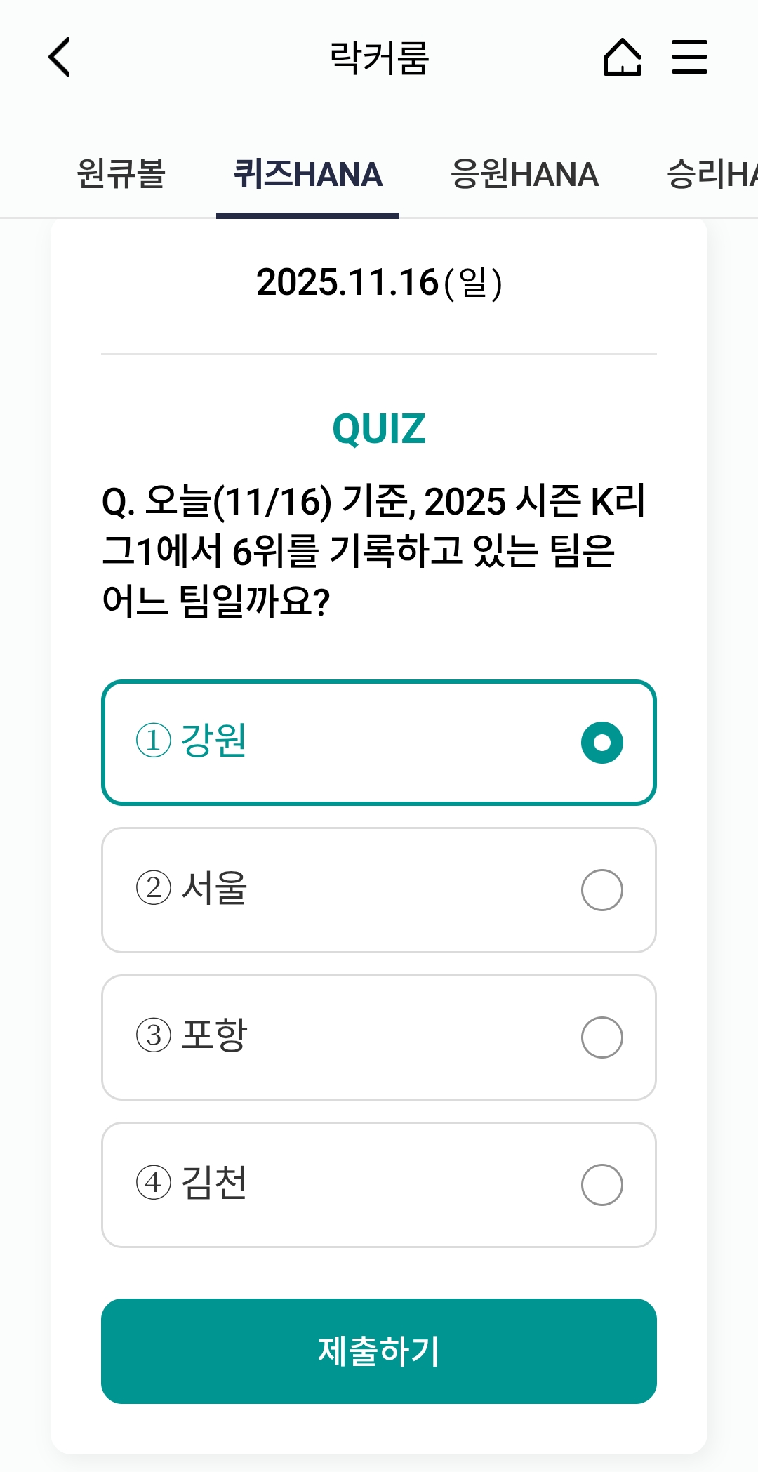 ⚽ 오늘의 하나원큐 축구퀴즈 정답 (2025년 11월 16일)
