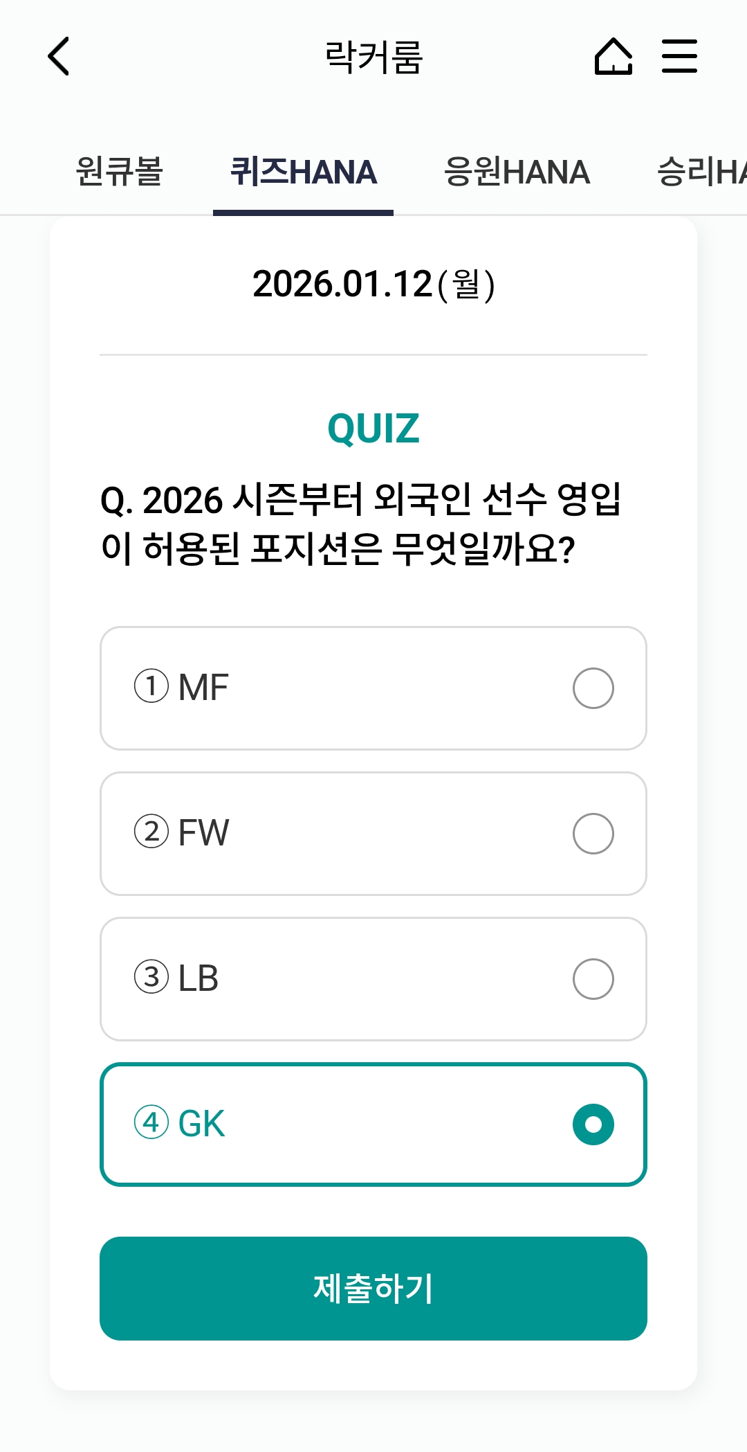 ⚽ 오늘의 하나원큐 축구퀴즈 정답 (2026년 1월 12일)