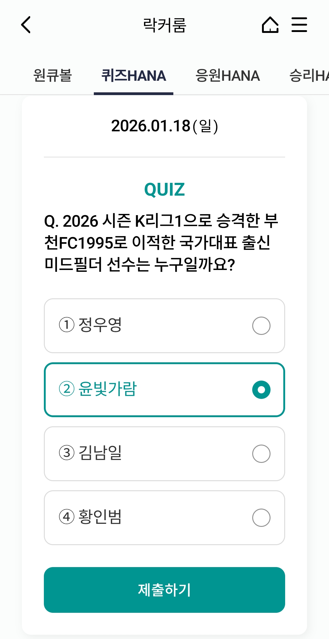 하나원큐 축구퀴즈 1월 18일 정답 및 원큐볼 적립 팁
