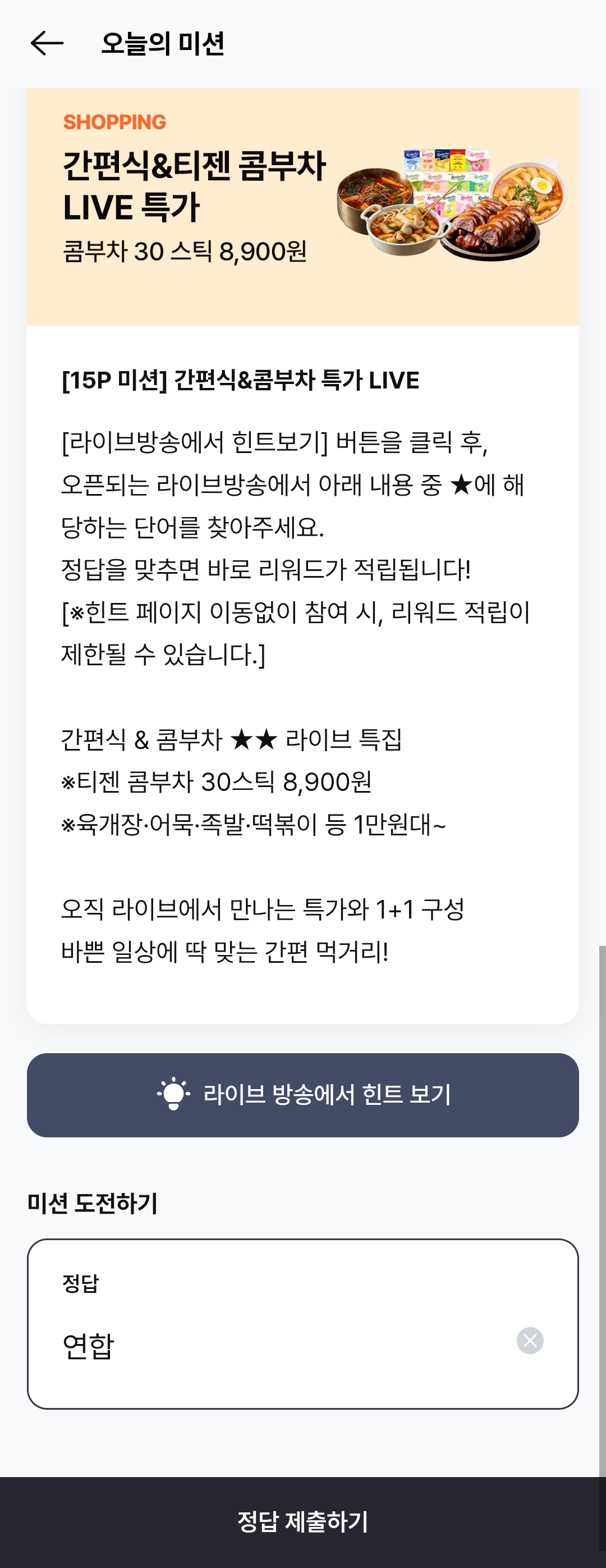 - 문제: 간편식 & 콤부차 ★★ 라이브 특집