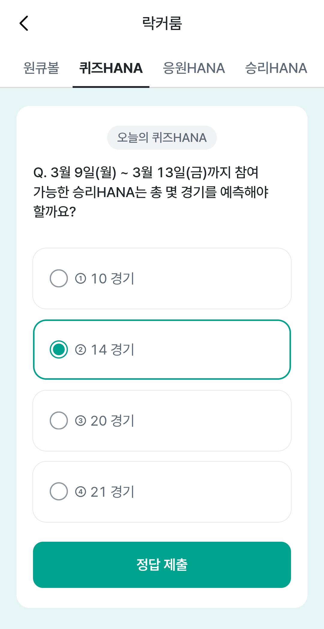 하나원큐 축구퀴즈 3월 10일 정답 및 원큐볼 적립 팁