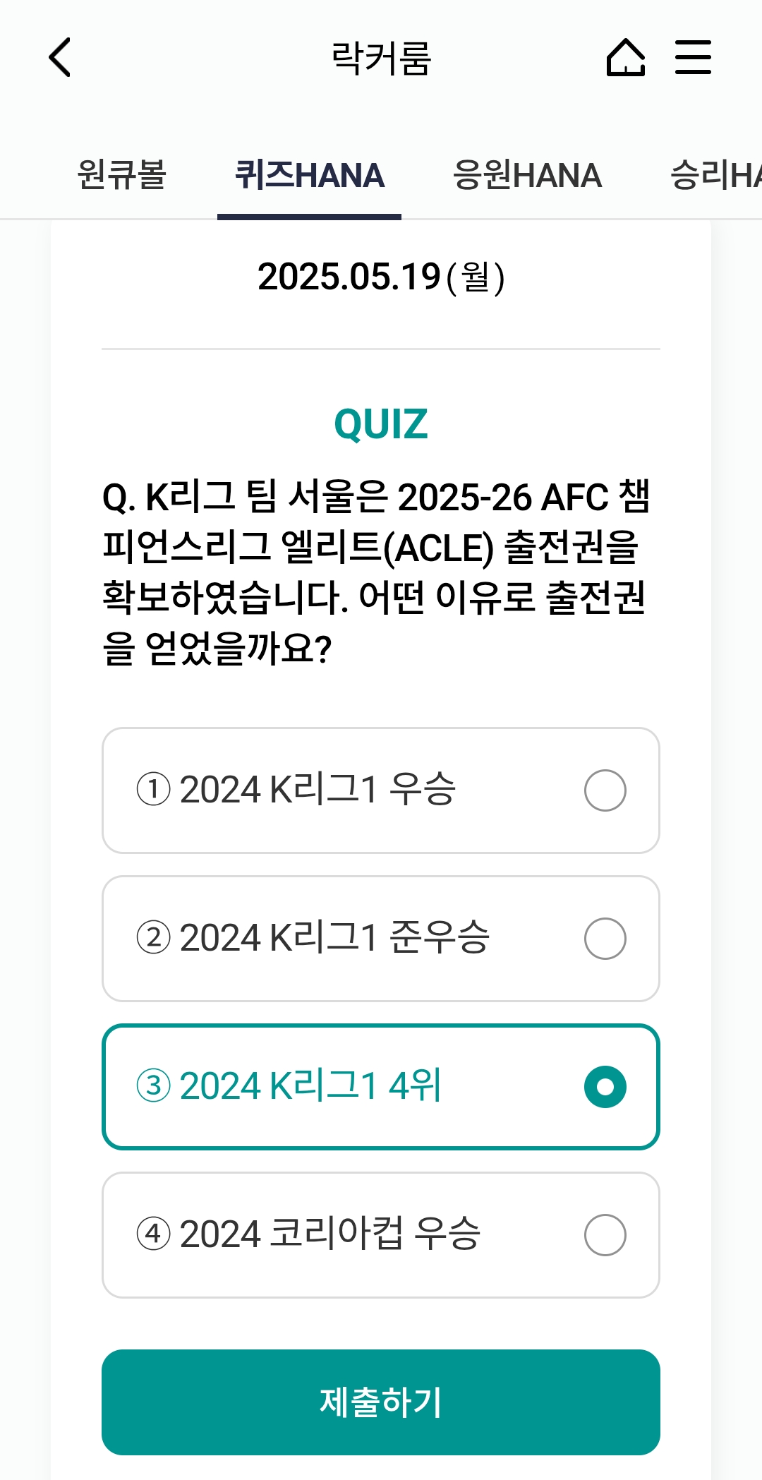 하나원큐 축구퀴즈 정답 ⚽ 2025년 5월 19일