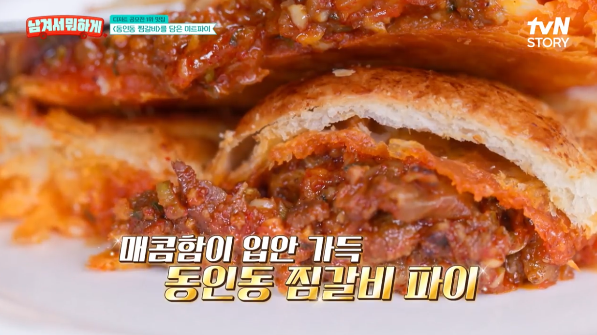 - 동인동찜갈비의 매콤하고 진한 맛이 바삭한 파이 속에 가득