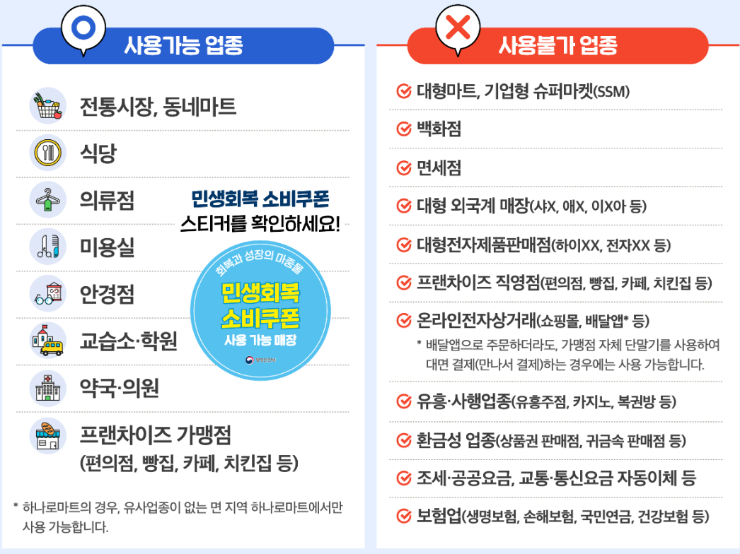 - 정부는 ‘민생회복 소비쿠폰 사용 가능 매장’ 스티커 부착 예정