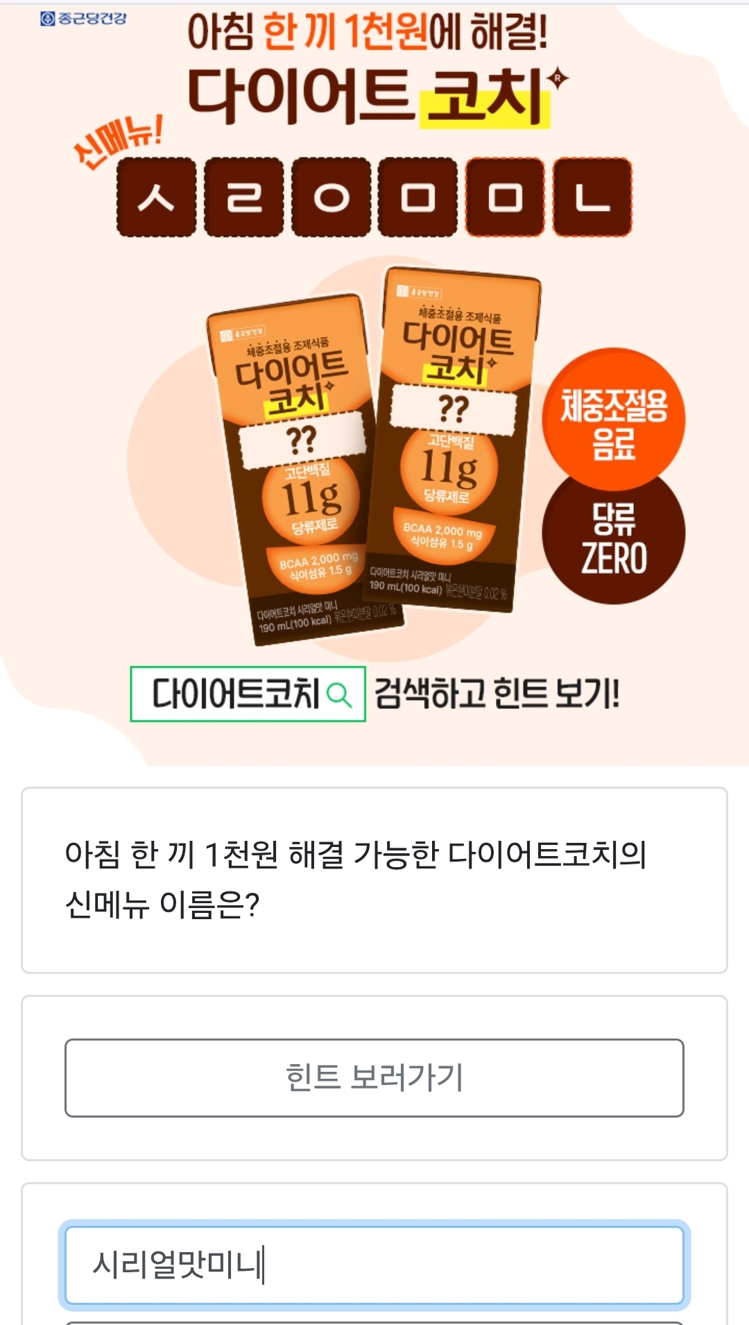 아래에서 종근당건강 다이어트코치 'ㅅㄹㅇㅁㅁㄴ' 문제의 최신 정답을 확인해 보시고, 리워드 포인트 놓치지 마세요!