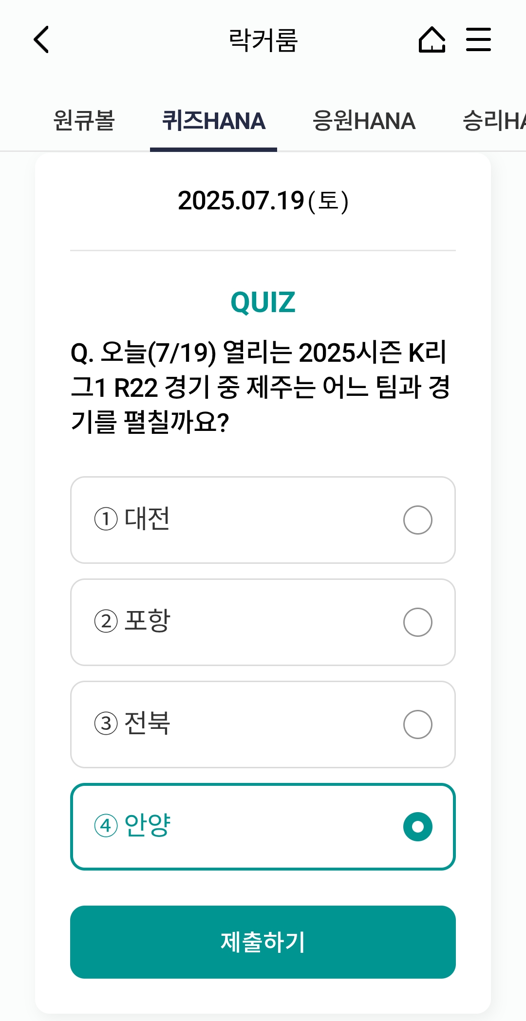 오늘의 하나원큐 축구퀴즈 정답 (2025년 7월 19일)