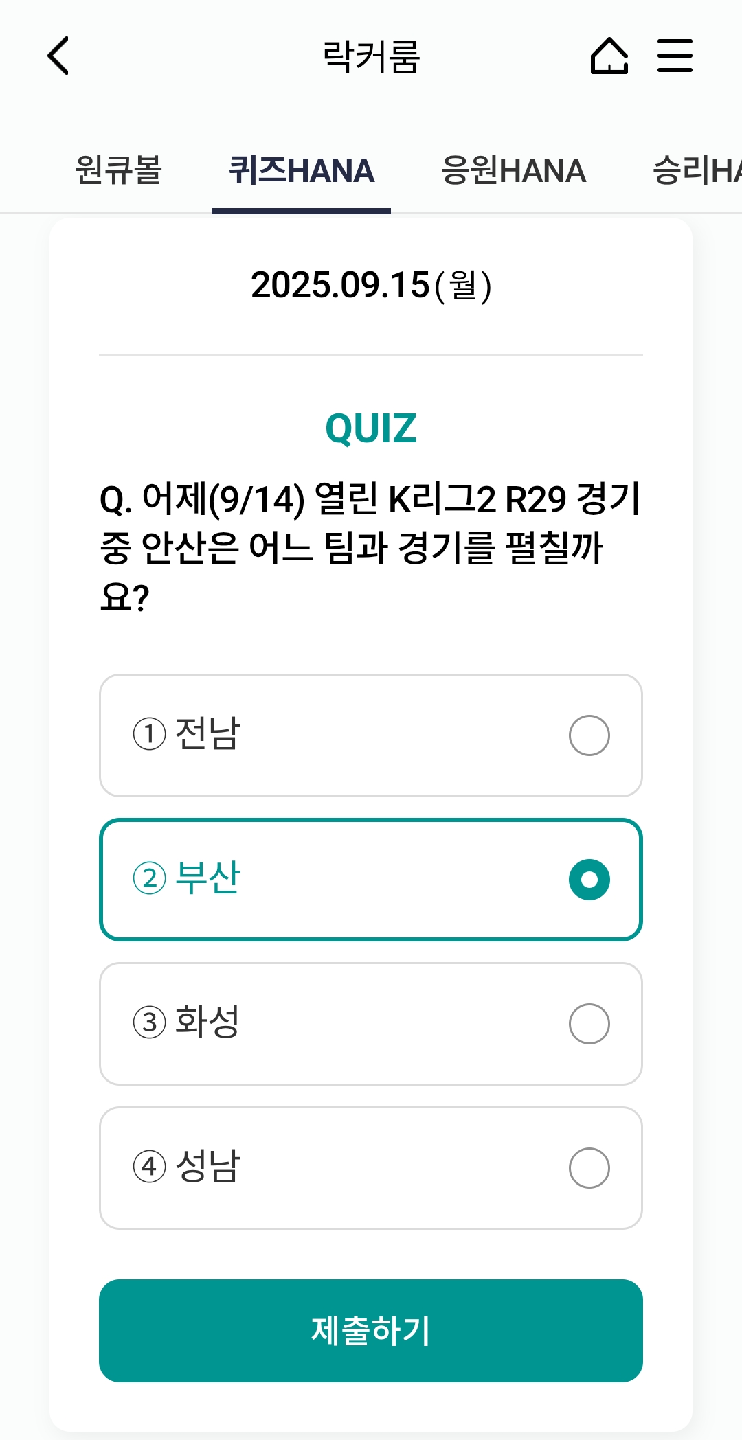 오늘의 하나원큐 축구퀴즈 정답 (2025년 9월 15일)