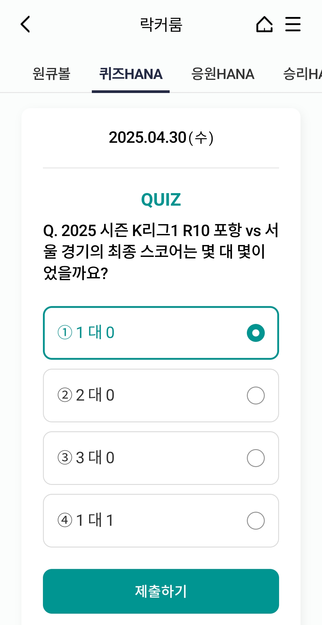 📅 2025년 4월 30 일 하나원큐 축구퀴즈