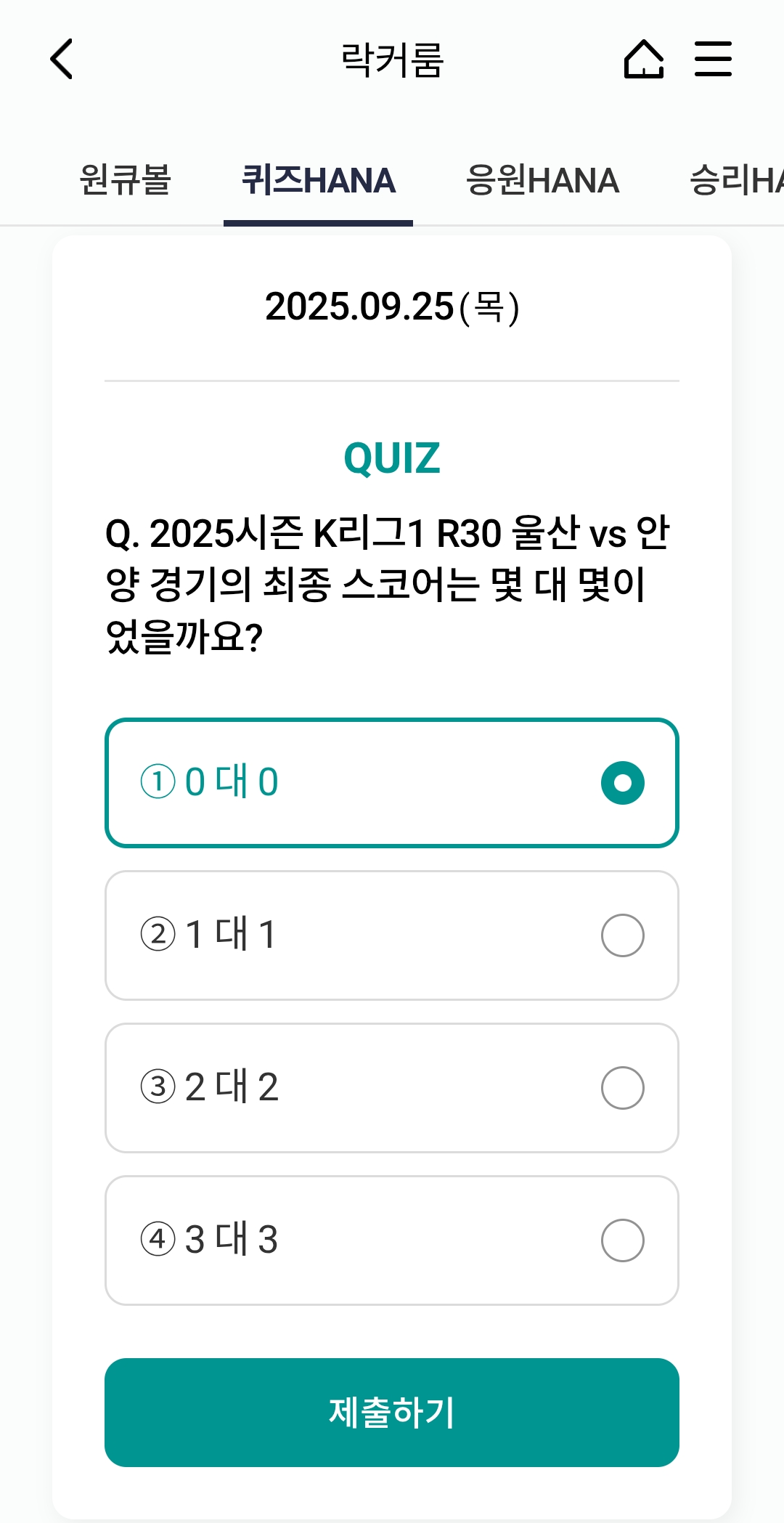 ⚽ 오늘의 하나원큐 축구퀴즈 정답 (2025년 9월 25일)