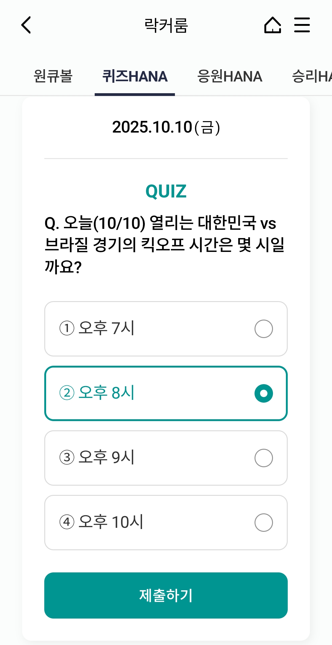 ⚽ 오늘의 하나원큐 축구퀴즈 정답 (2025년 10월 10일)