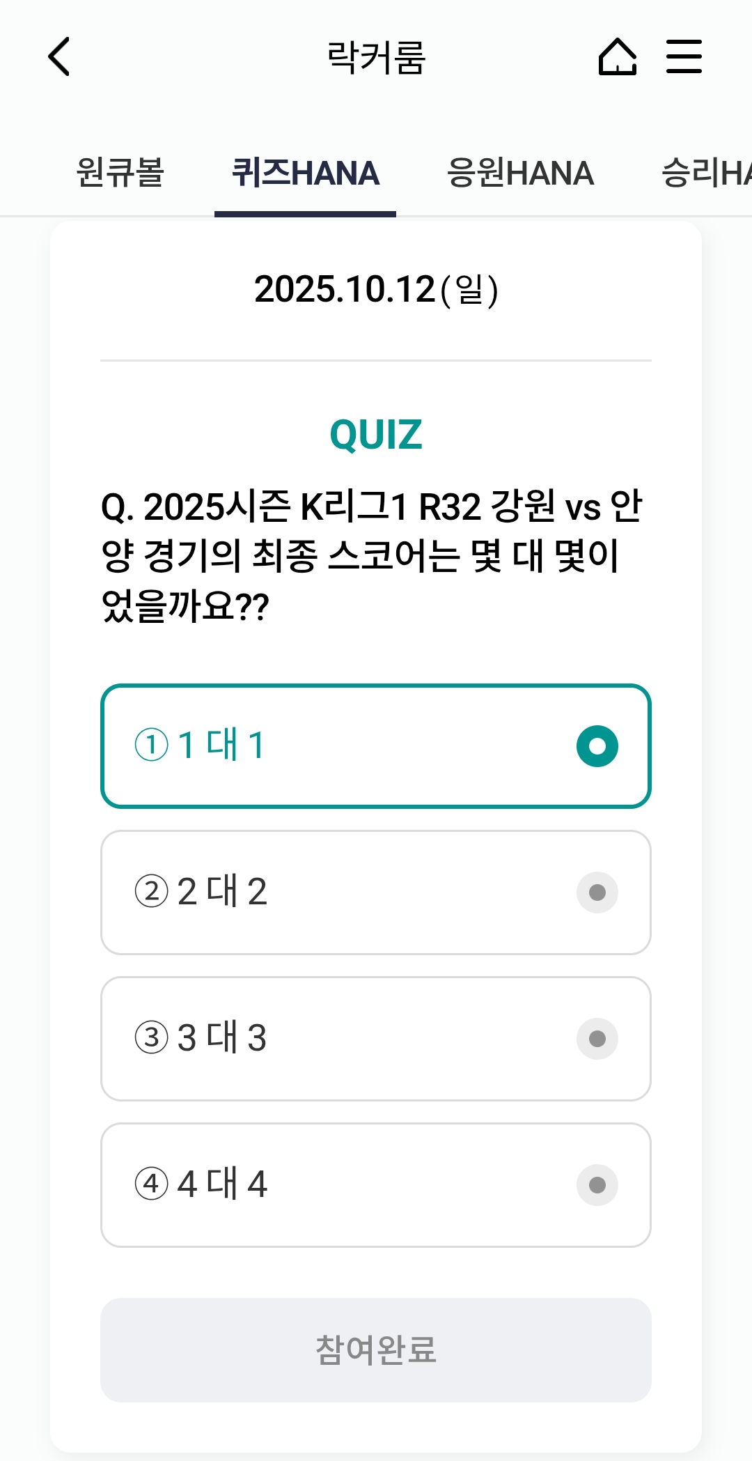 ⚽ 오늘의 하나원큐 축구퀴즈 정답 (2025년 10월 12일)