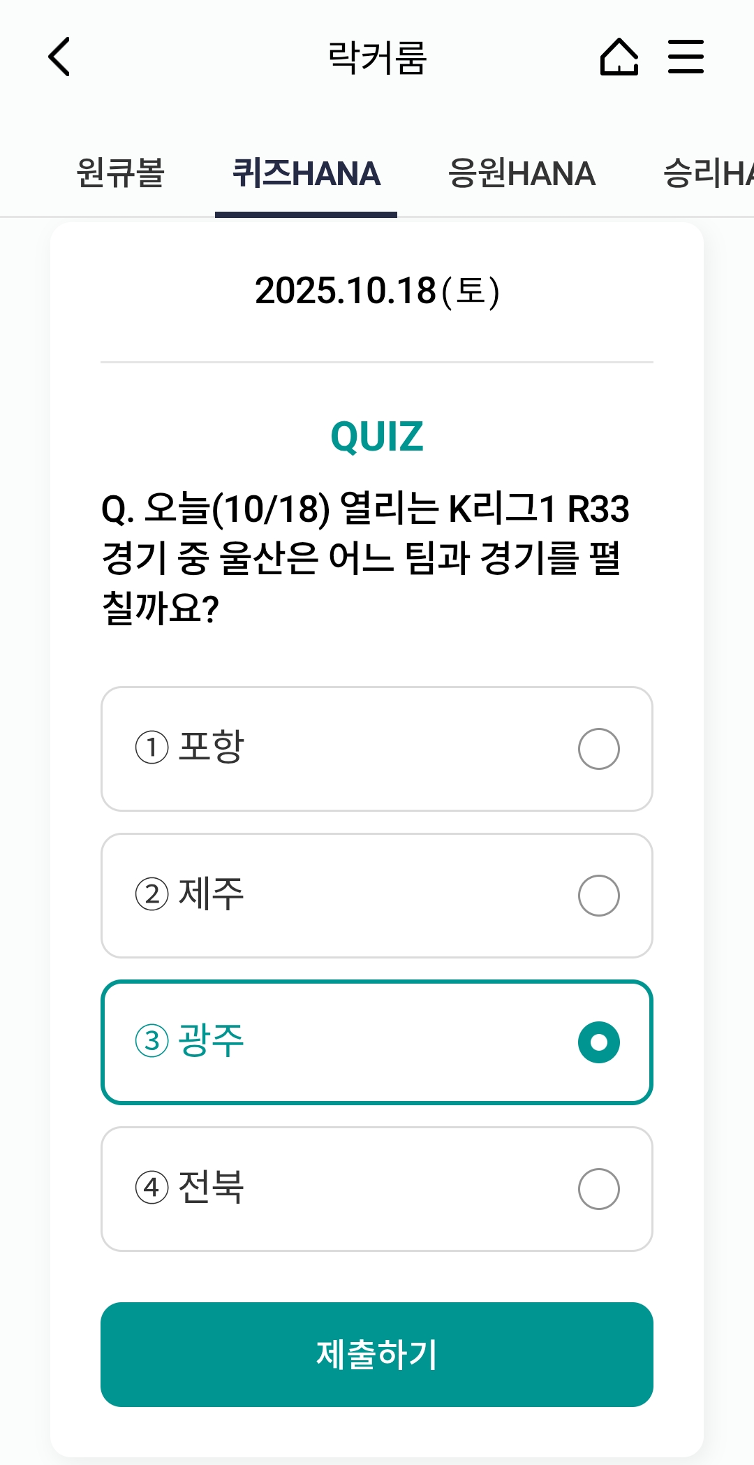 ⚽ 오늘의 하나원큐 축구퀴즈 정답 (2025년 10월 18일)