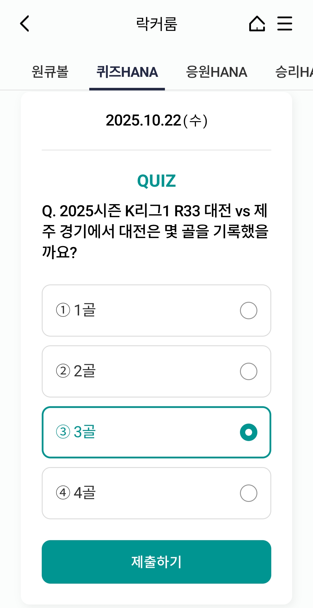 ⚽ 오늘의 하나원큐 축구퀴즈 정답 (2025년 10월 22일)