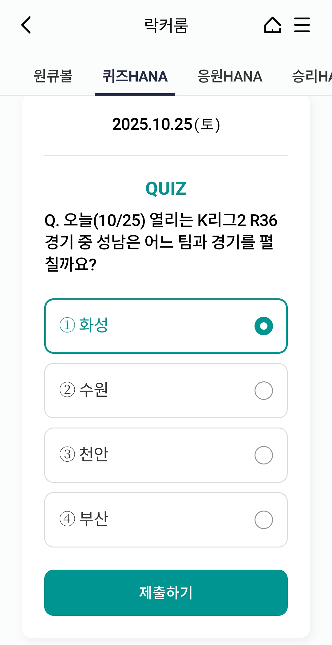 ⚽ 오늘의 하나원큐 축구퀴즈 정답 (2025년 10월 25일)